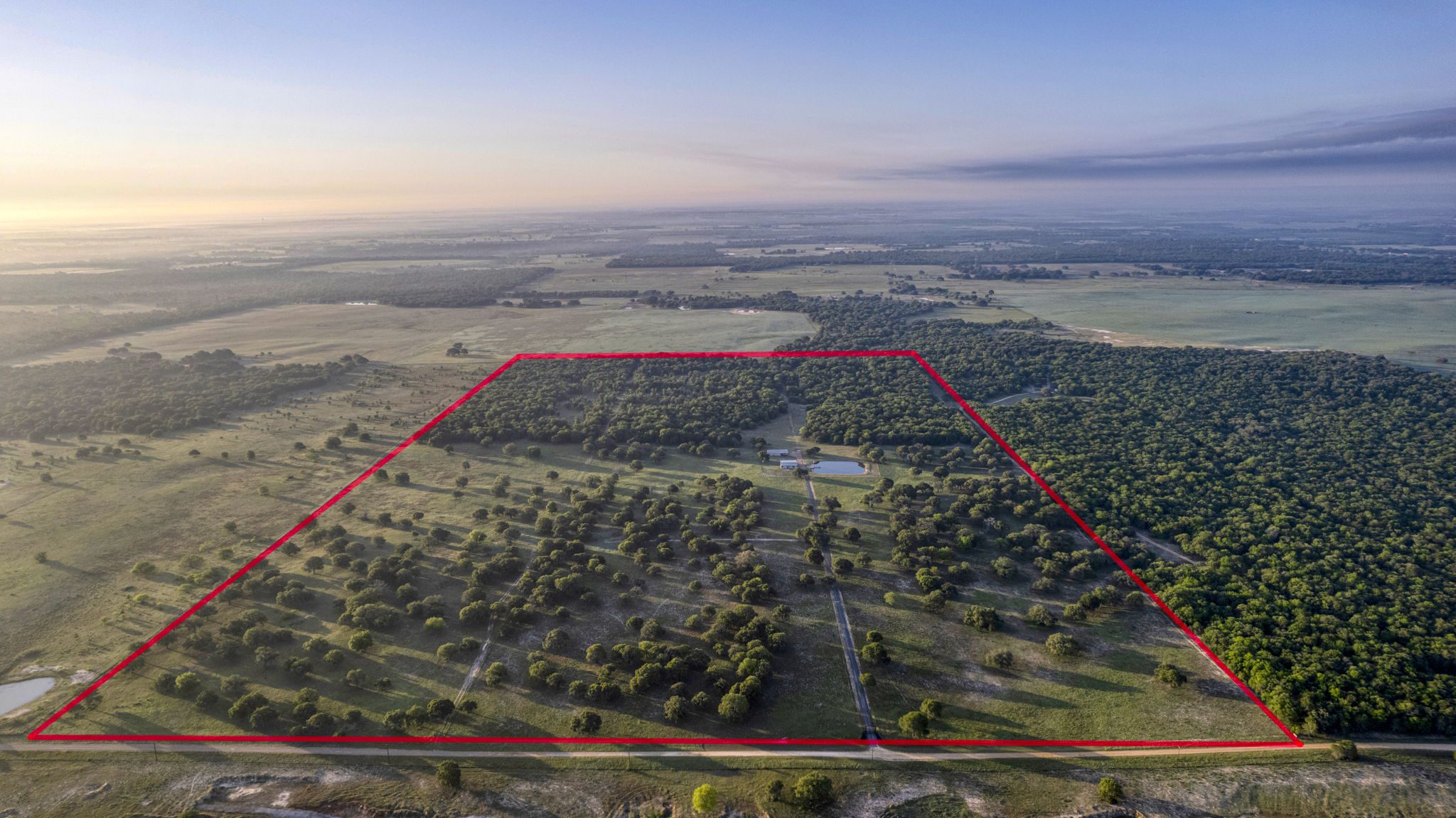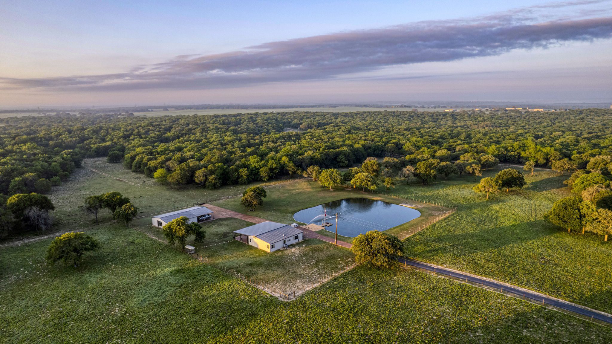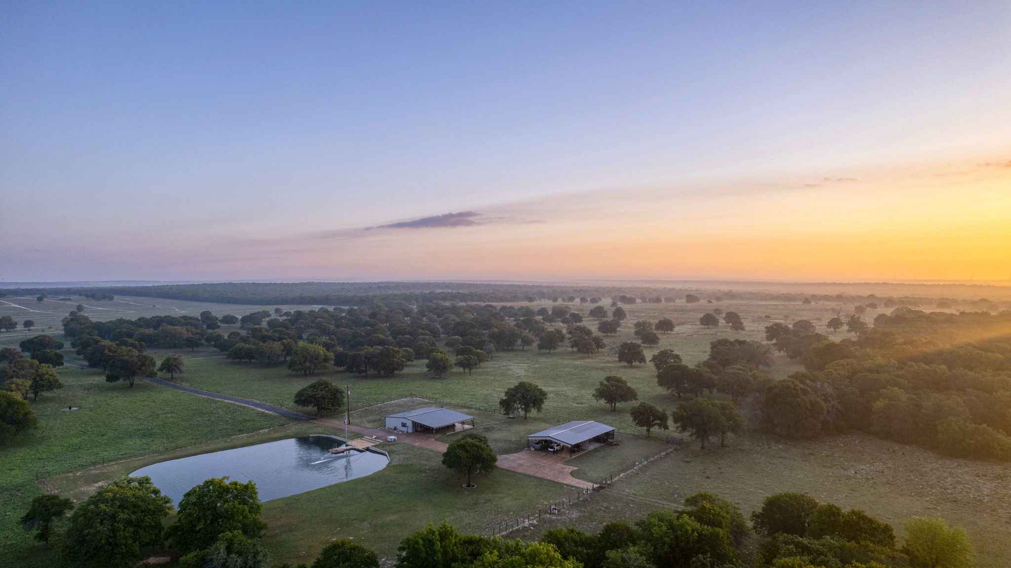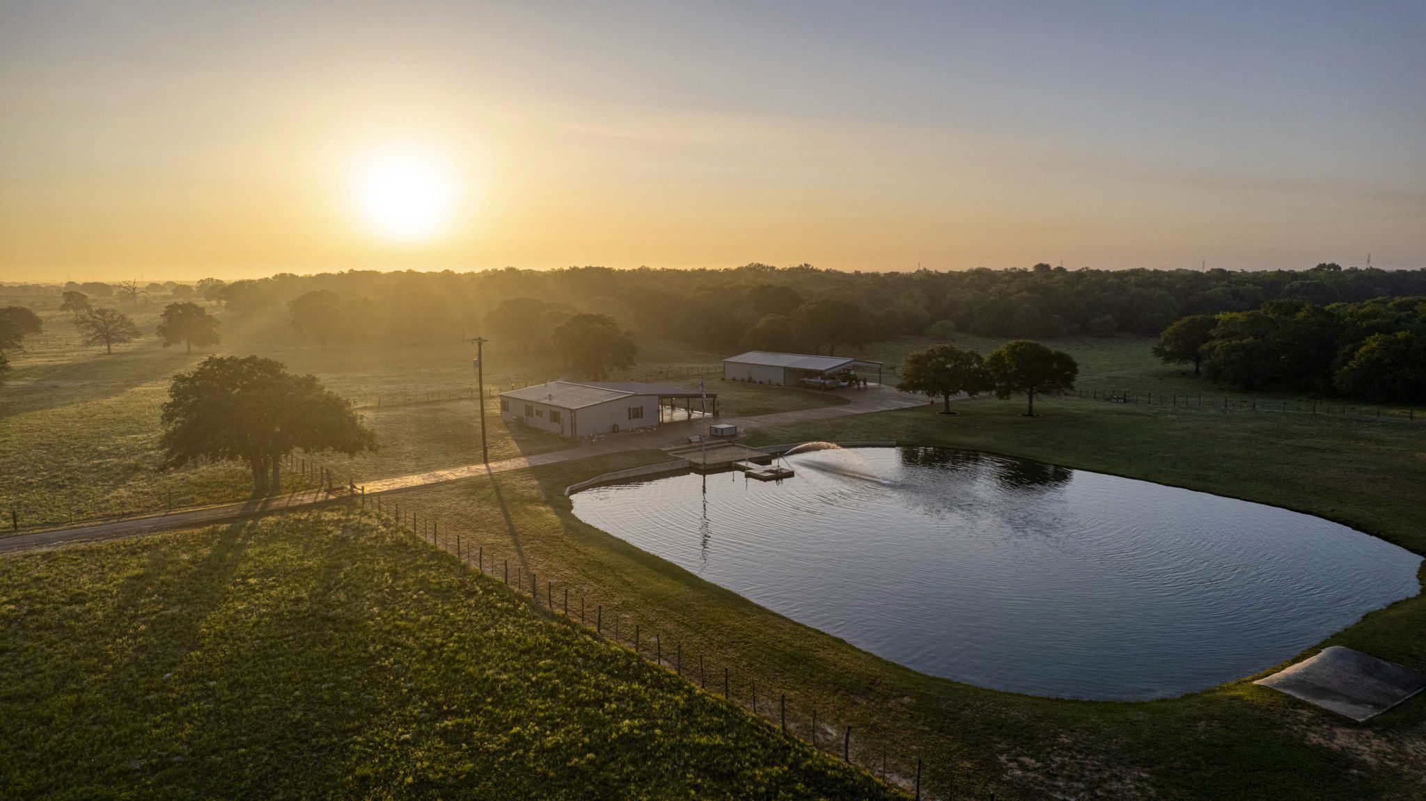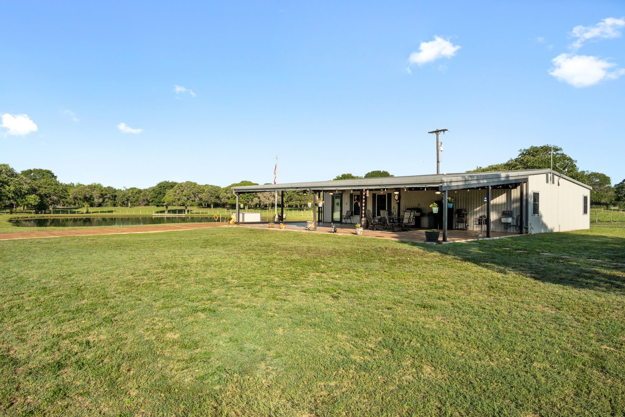 The land boasts an abundance of wildlife, including whitetail deer, hogs, dove, and turkey, making it an ideal spot for outdoor enthusiasts and hunters. In addition to the exceptional hunting opportunities, this ranch also provides great largemouth bass fishing in the ½ acre pond near the barndominium, fed by a water well to maintain the water level year-round.
