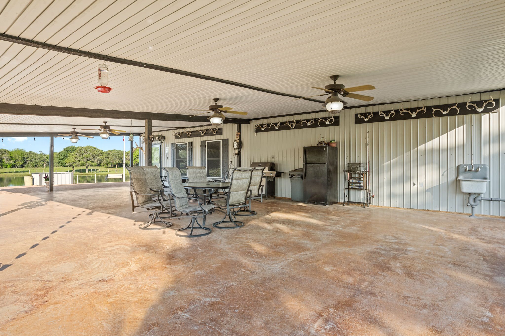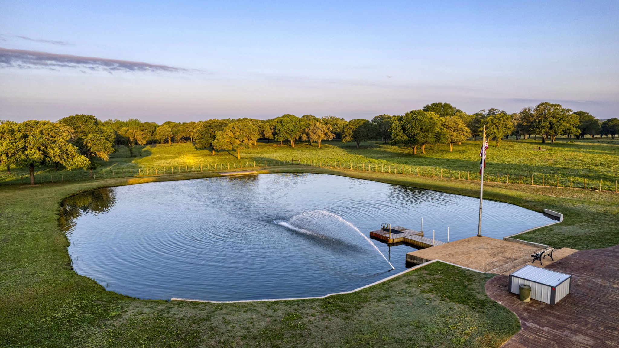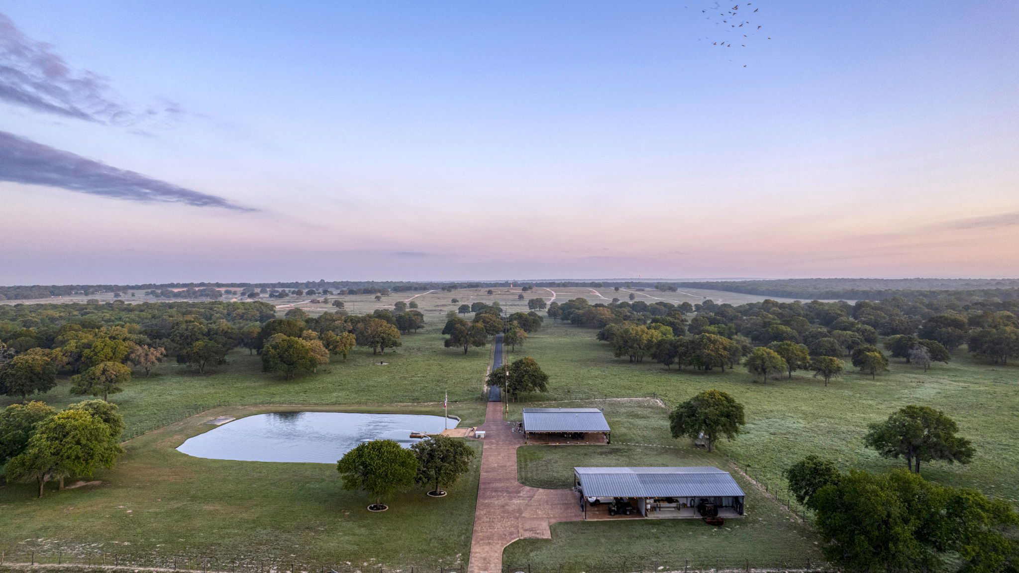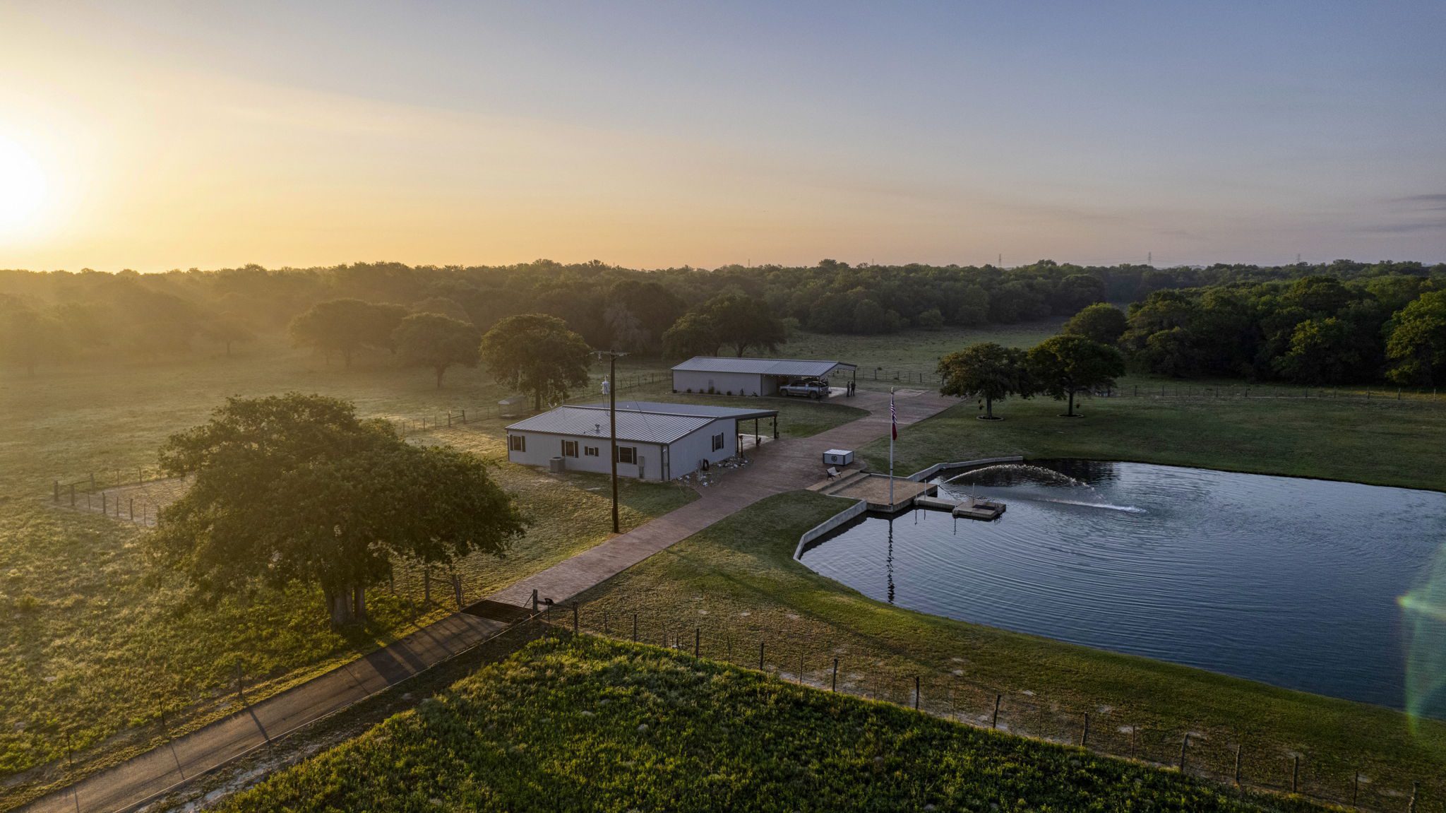The land boasts an abundance of wildlife, including whitetail deer, hogs, dove, and turkey, making it an ideal spot for outdoor enthusiasts and hunters. In addition to the exceptional hunting opportunities, this ranch also provides great largemouth bass fishing in the ½ acre pond near the barndominium, fed by a water well to maintain the water level year-round.