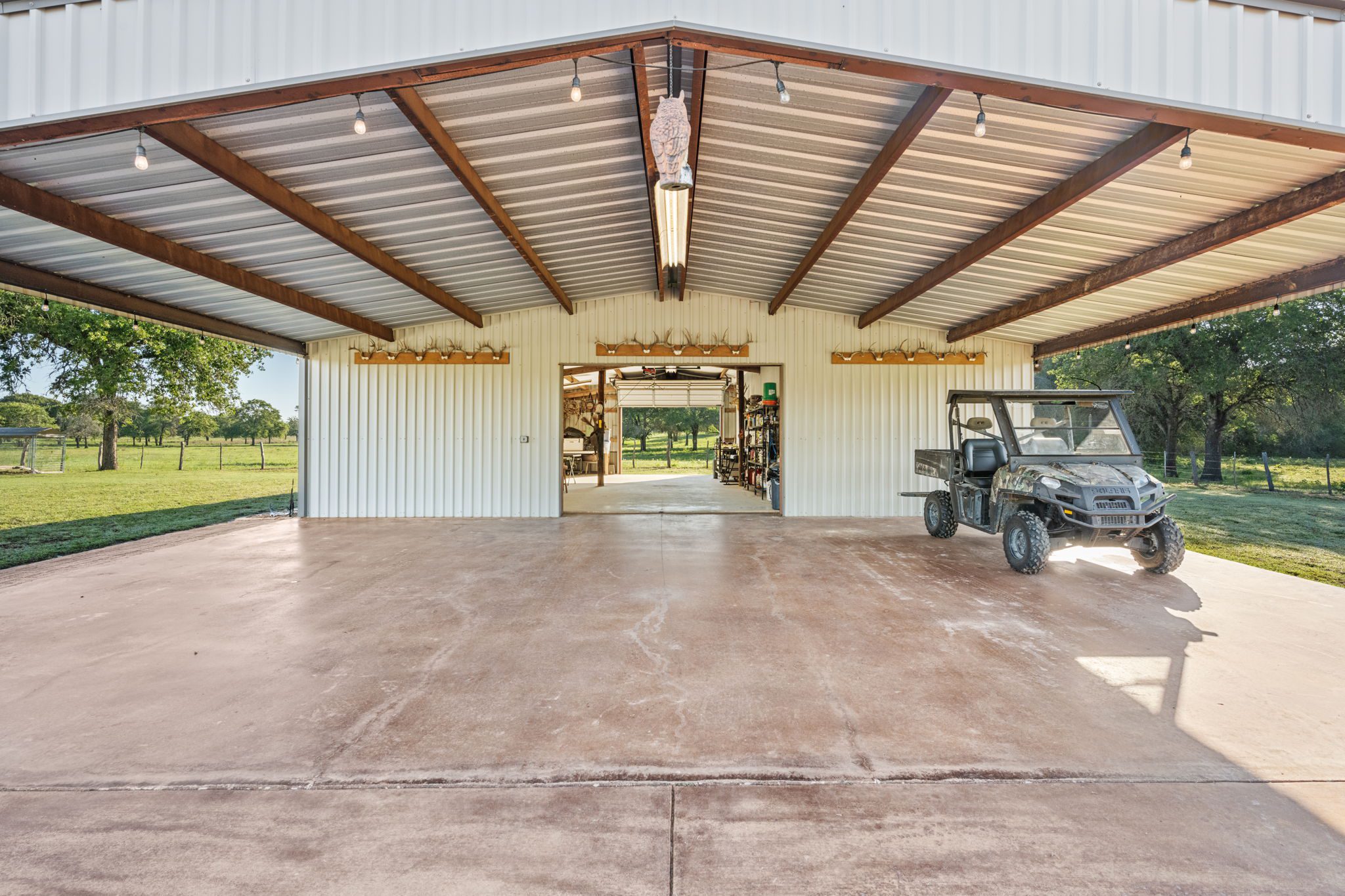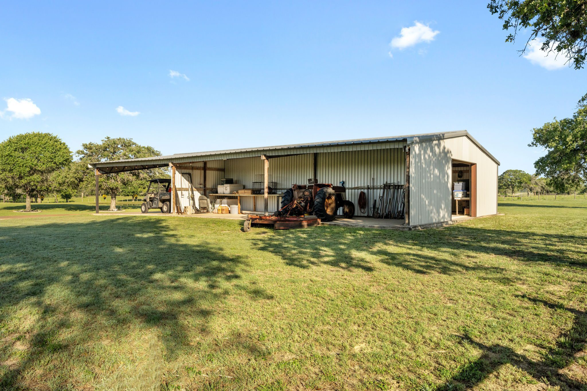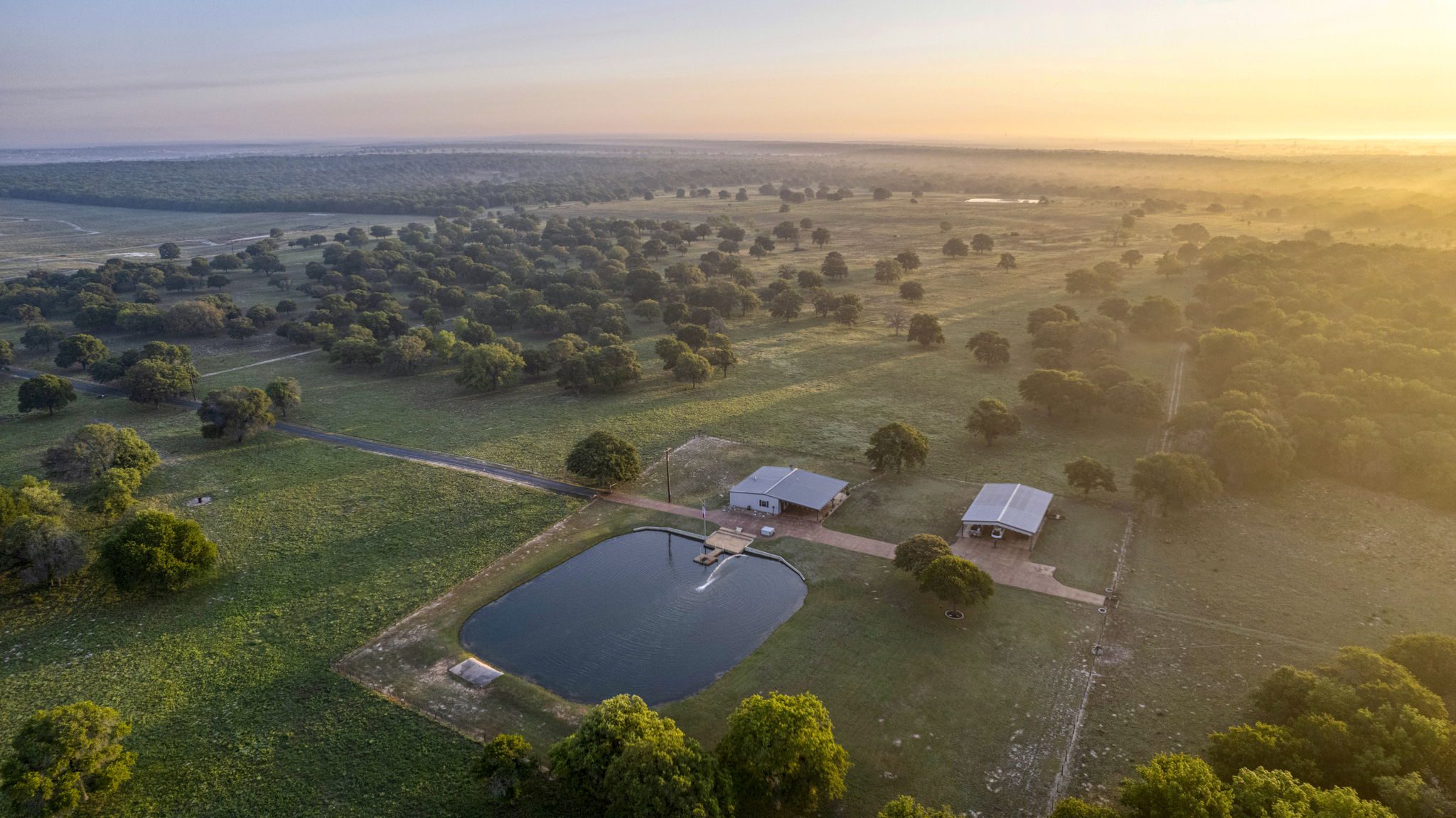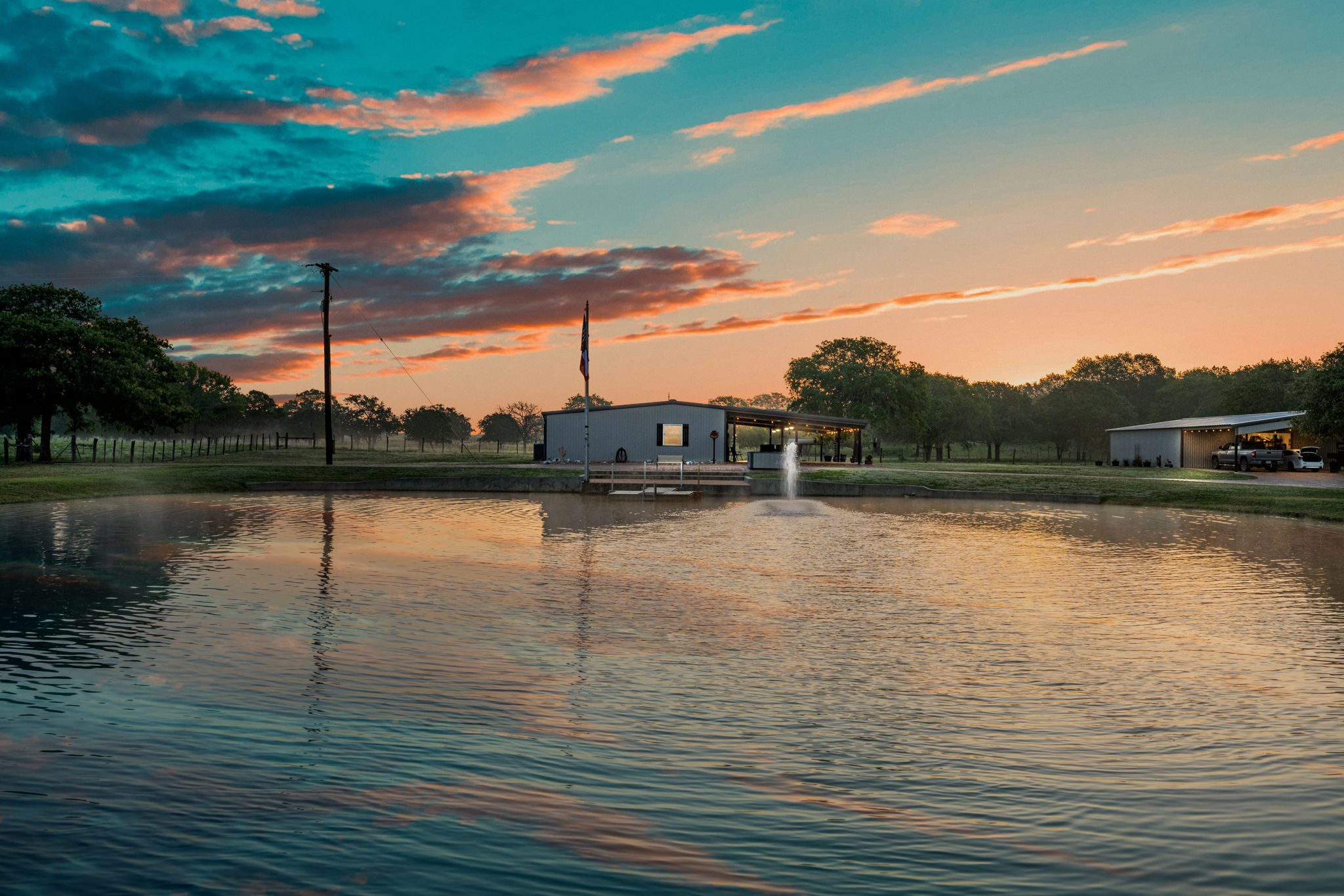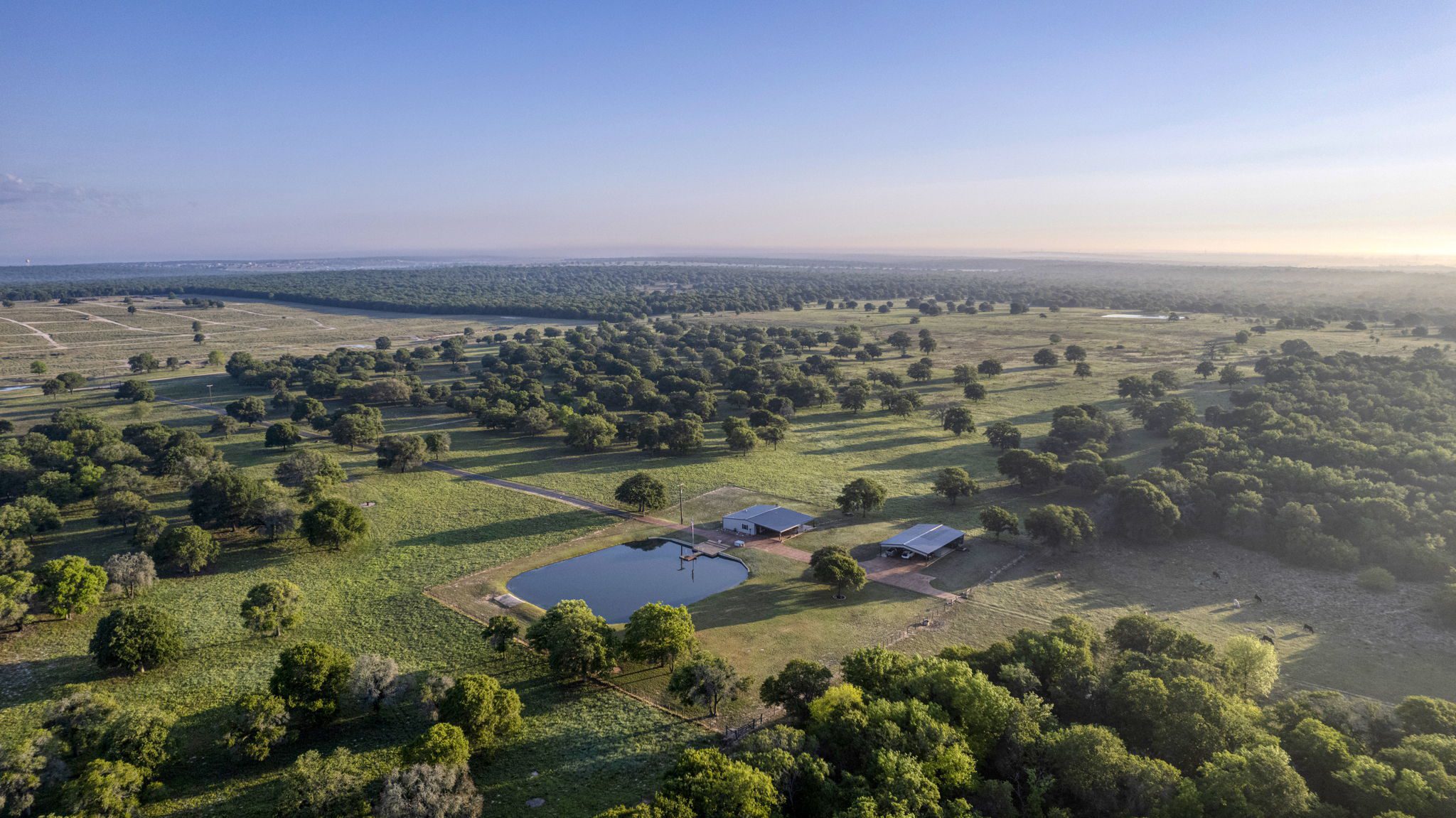The land boasts an abundance of wildlife, including whitetail deer, hogs, dove, and turkey, making it an ideal spot for outdoor enthusiasts and hunters. In addition to the exceptional hunting opportunities, this ranch also provides great largemouth bass fishing in the ½ acre pond near the barndominium, fed by a water well to maintain the water level year-round.