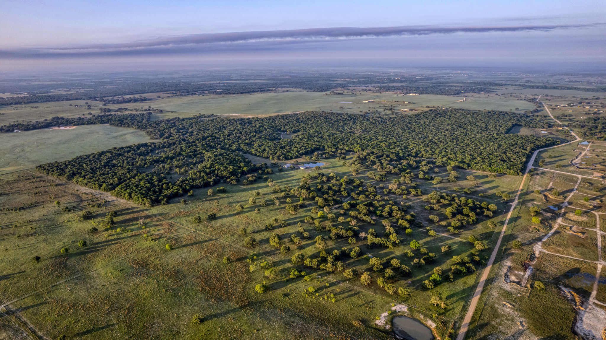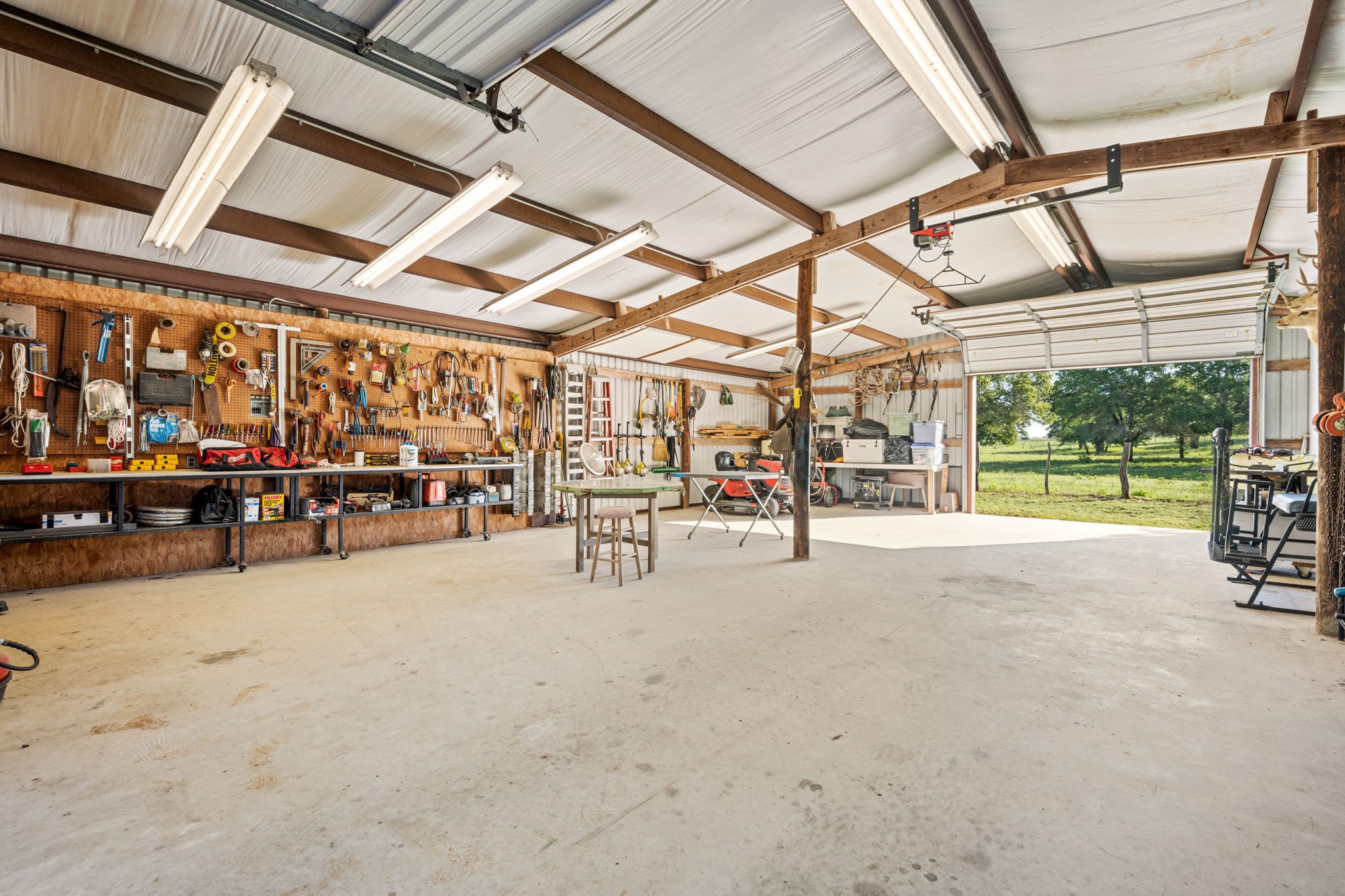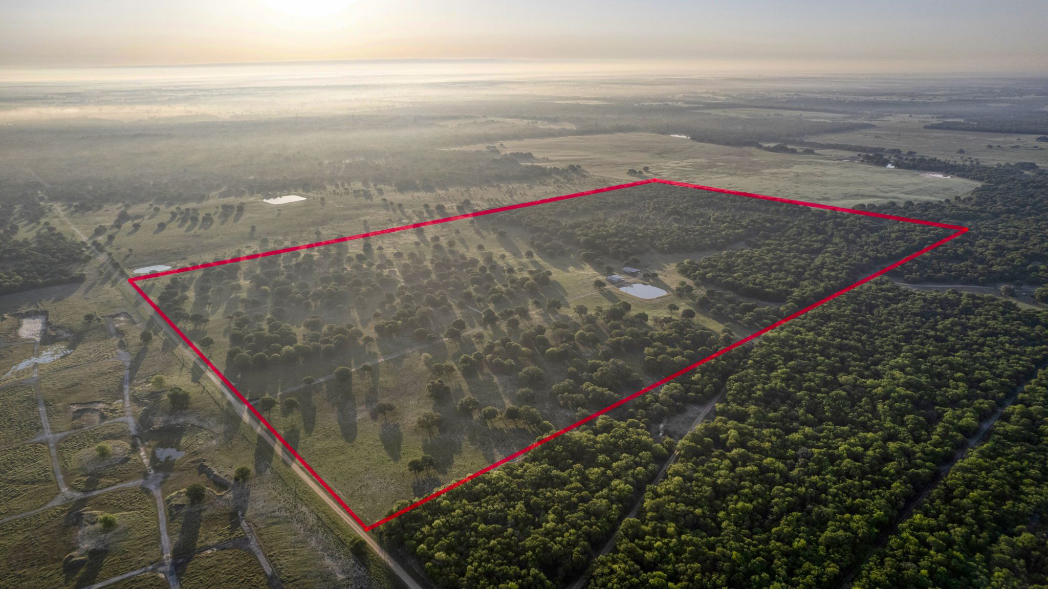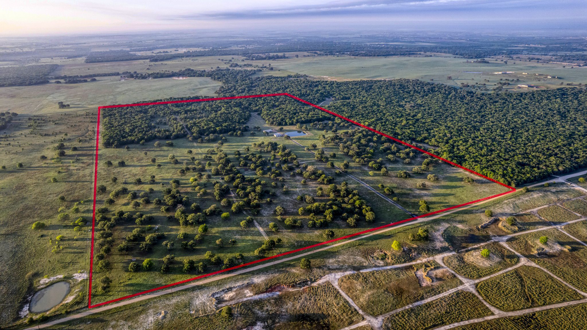 The land boasts an abundance of wildlife, including whitetail deer, hogs, dove, and turkey, making it an ideal spot for outdoor enthusiasts and hunters. In addition to the exceptional hunting opportunities, this ranch also provides great largemouth bass fishing in the ½ acre pond near the barndominium, fed by a water well to maintain the water level year-round.