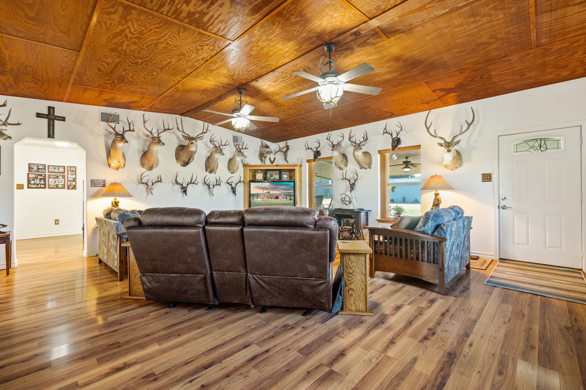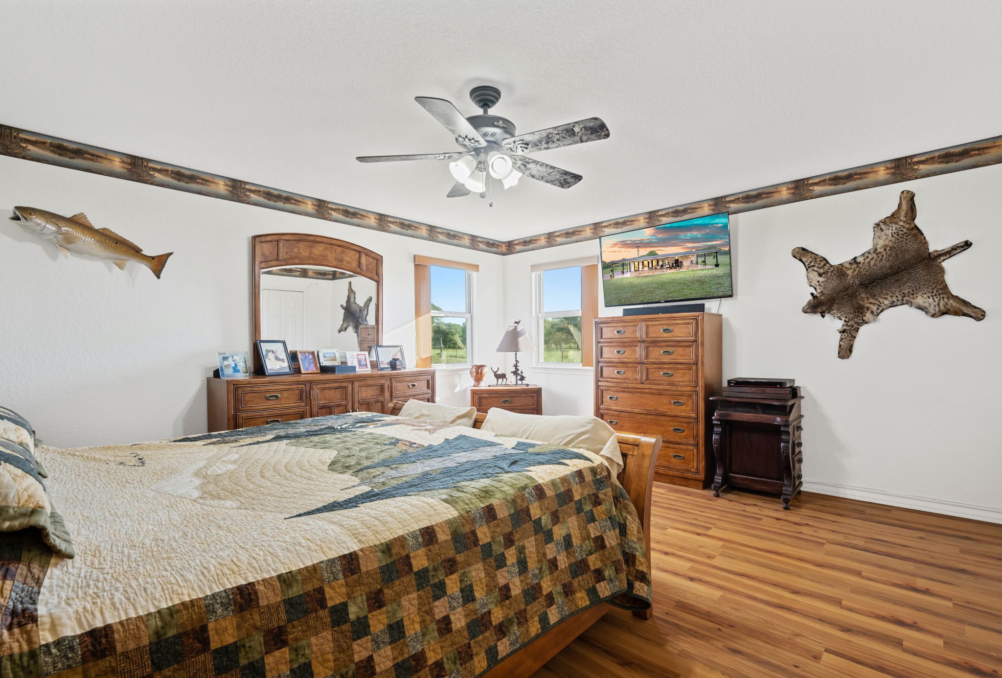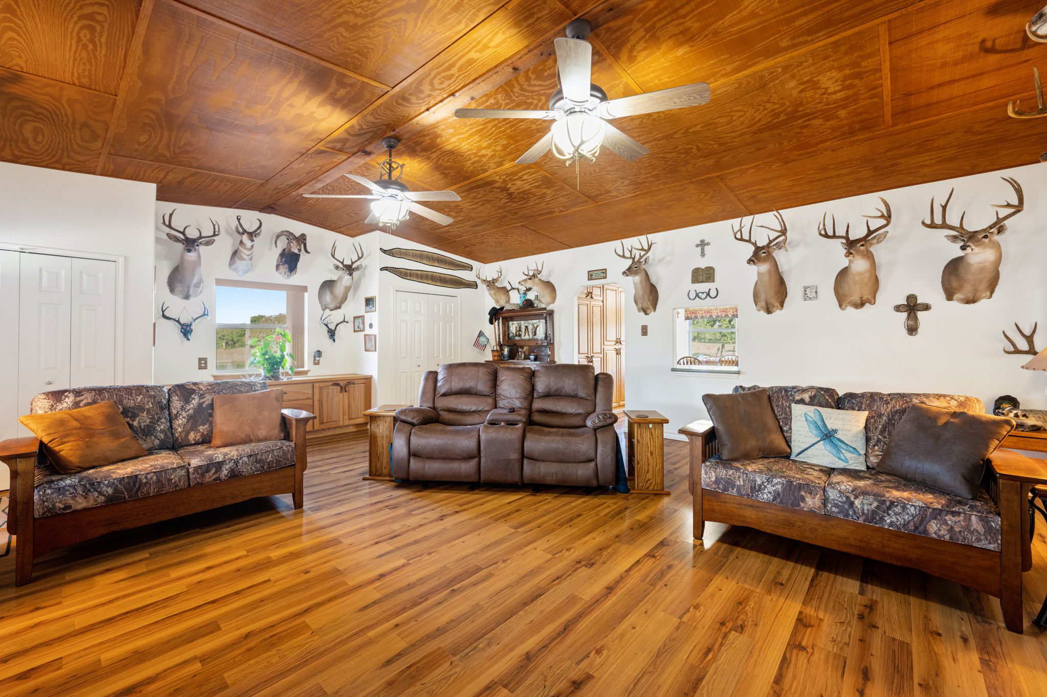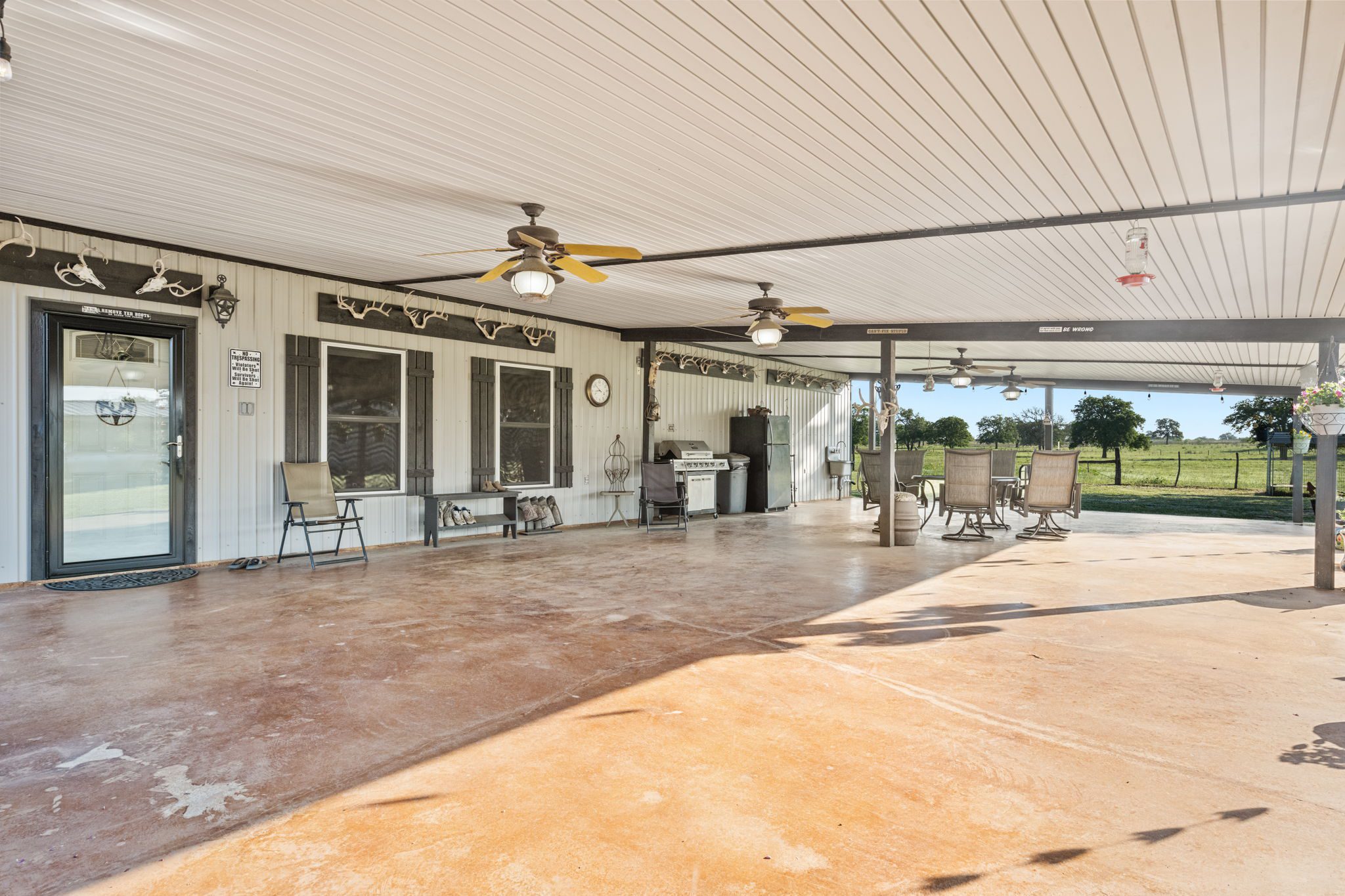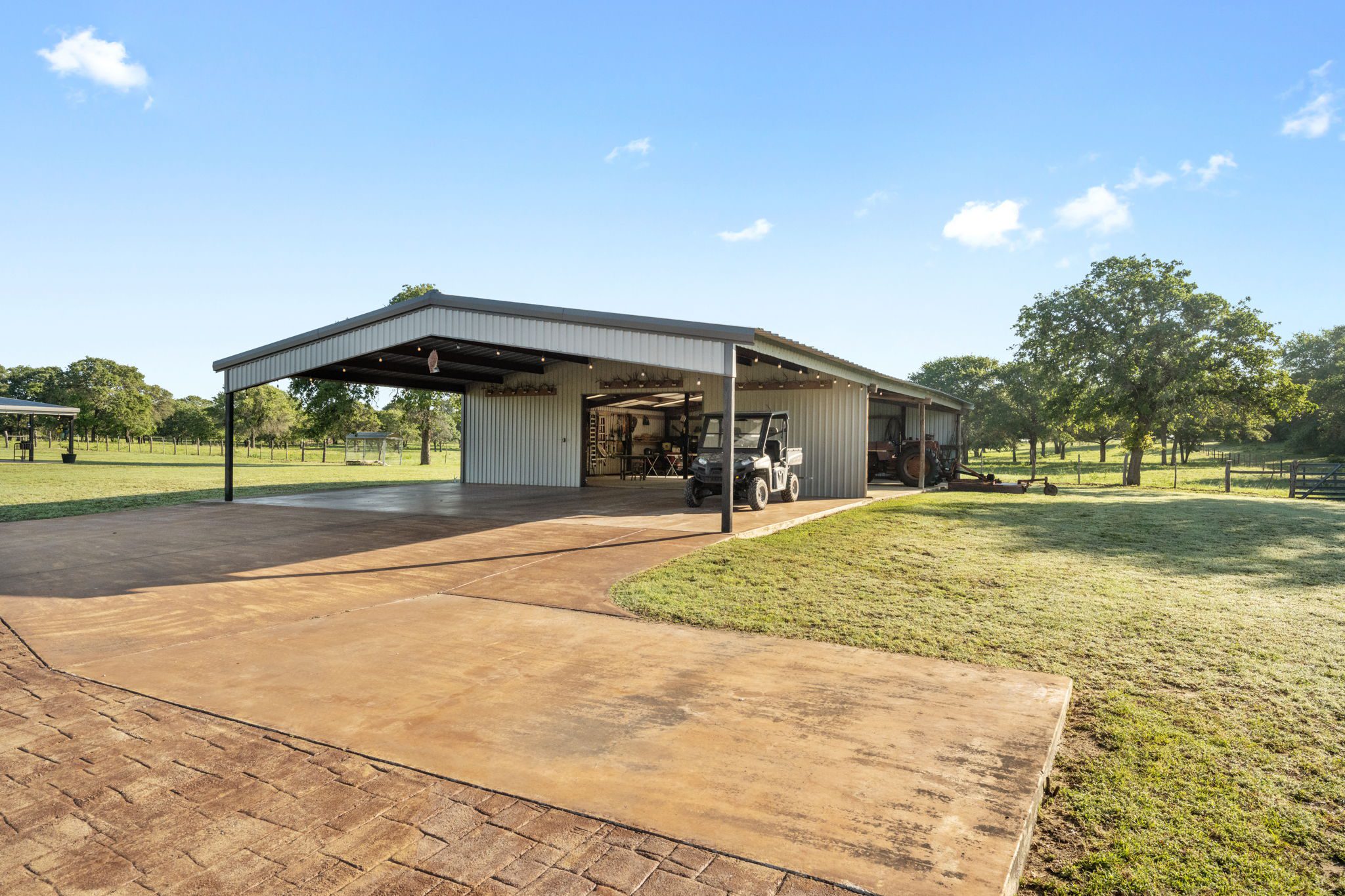 The land boasts an abundance of wildlife, including whitetail deer, hogs, dove, and turkey, making it an ideal spot for outdoor enthusiasts and hunters. In addition to the exceptional hunting opportunities, this ranch also provides great largemouth bass fishing in the ½ acre pond near the barndominium, fed by a water well to maintain the water level year-round.