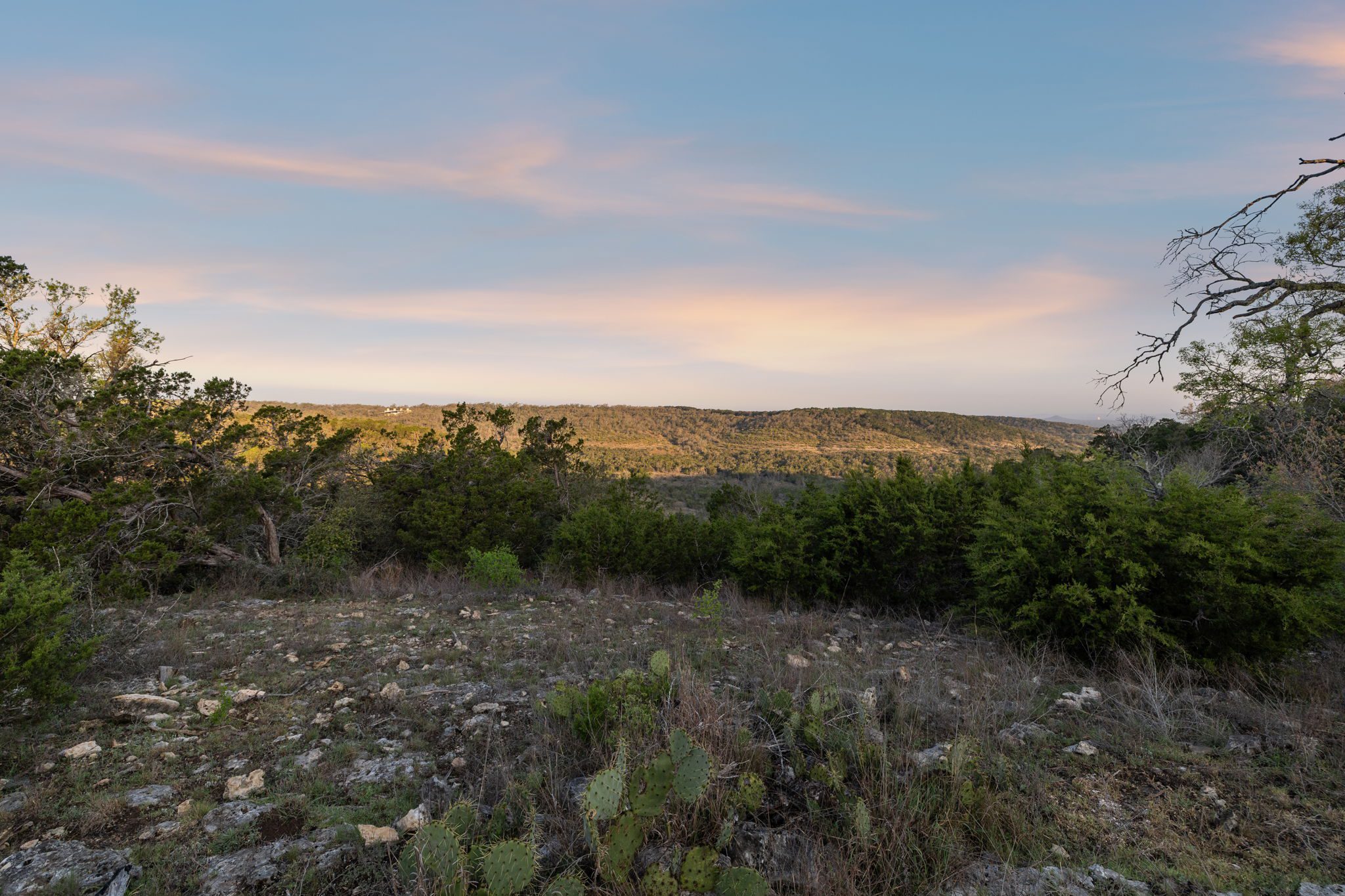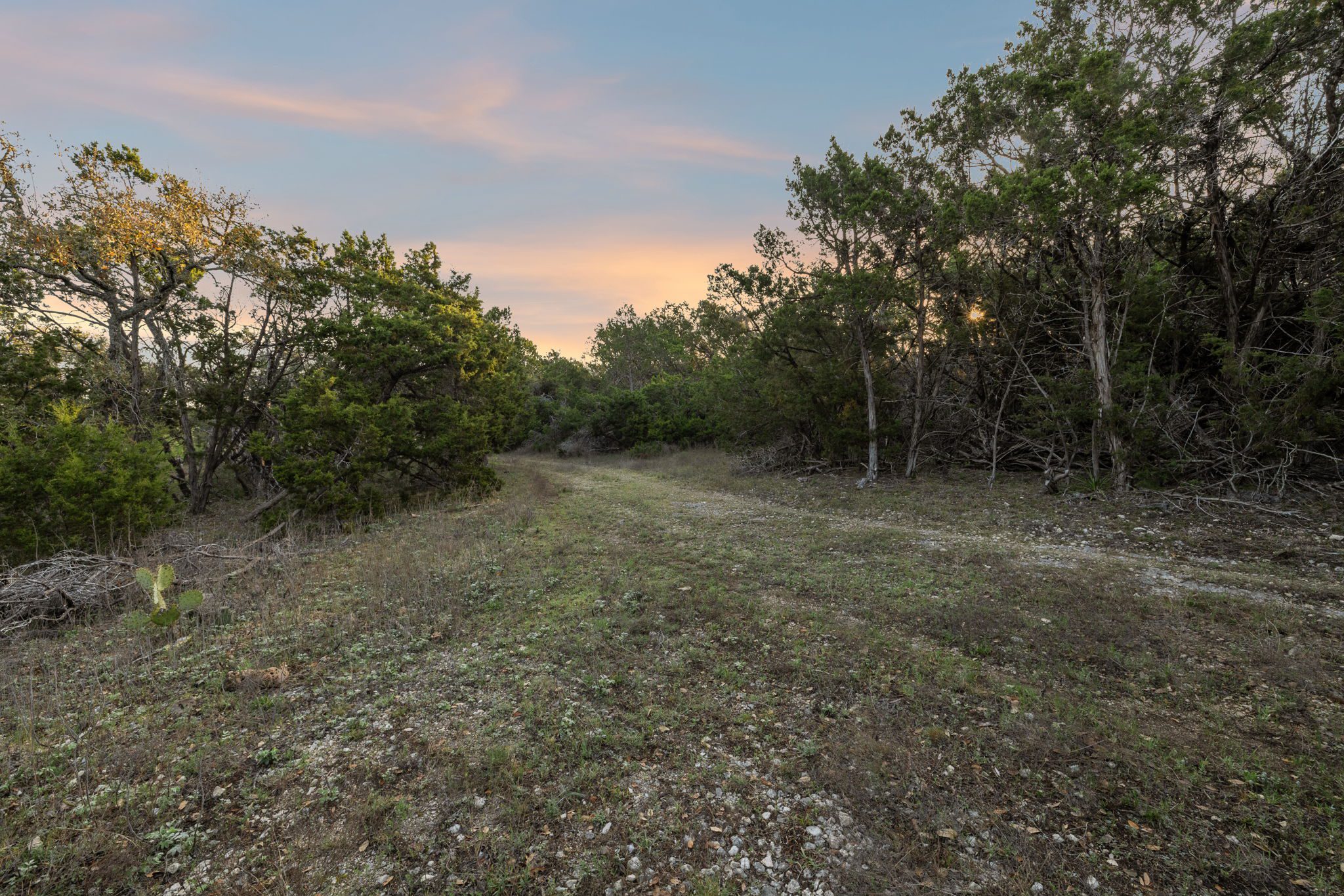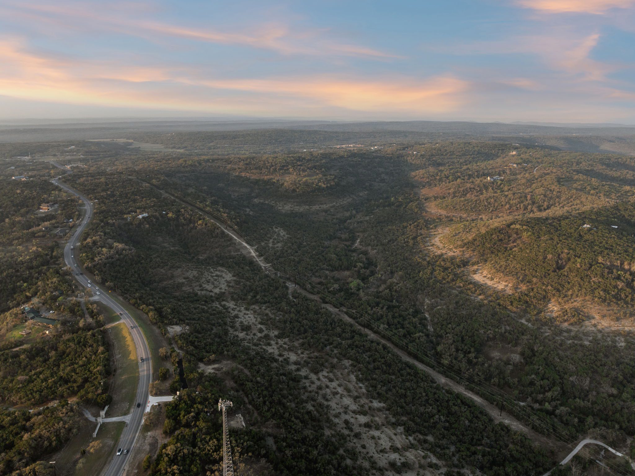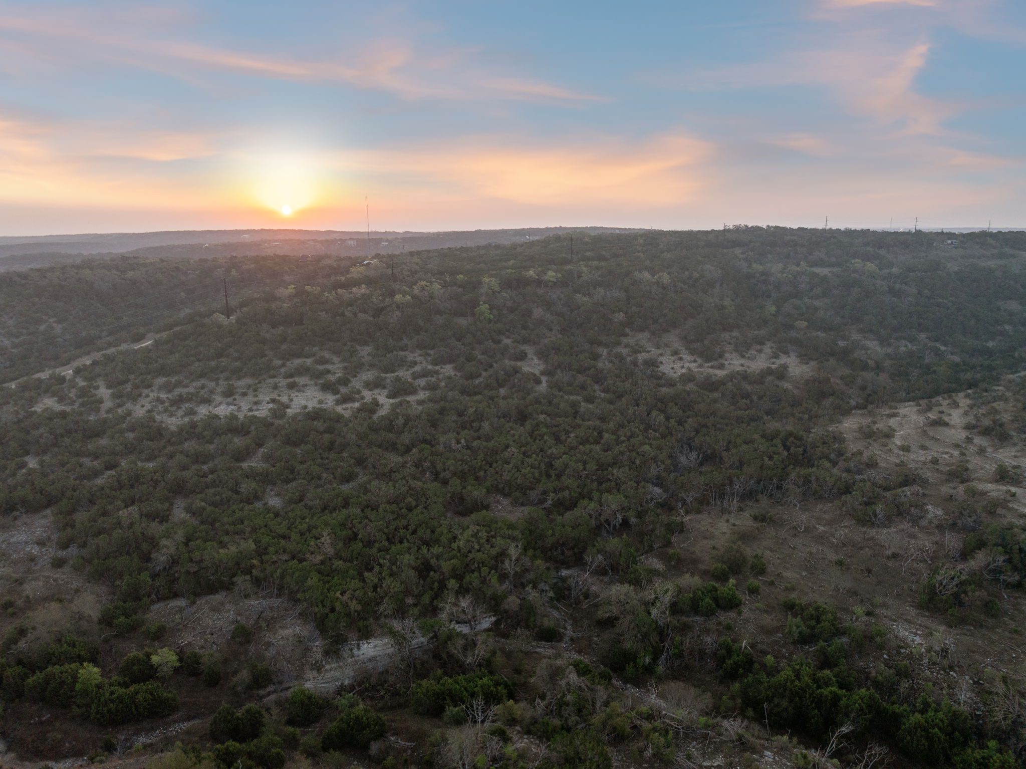 The ranch features rolling hills, mature oaks, cedar, and native brush, creating a scenic and private setting. Two seasonal creeks meander through the property, exposing dramatic limestone formations. With elevation ranging from 1,200± feet at the southeastern end to 1,020± feet to the northwest, the land offers multiple prime building sites with stunning sunset vistas.
