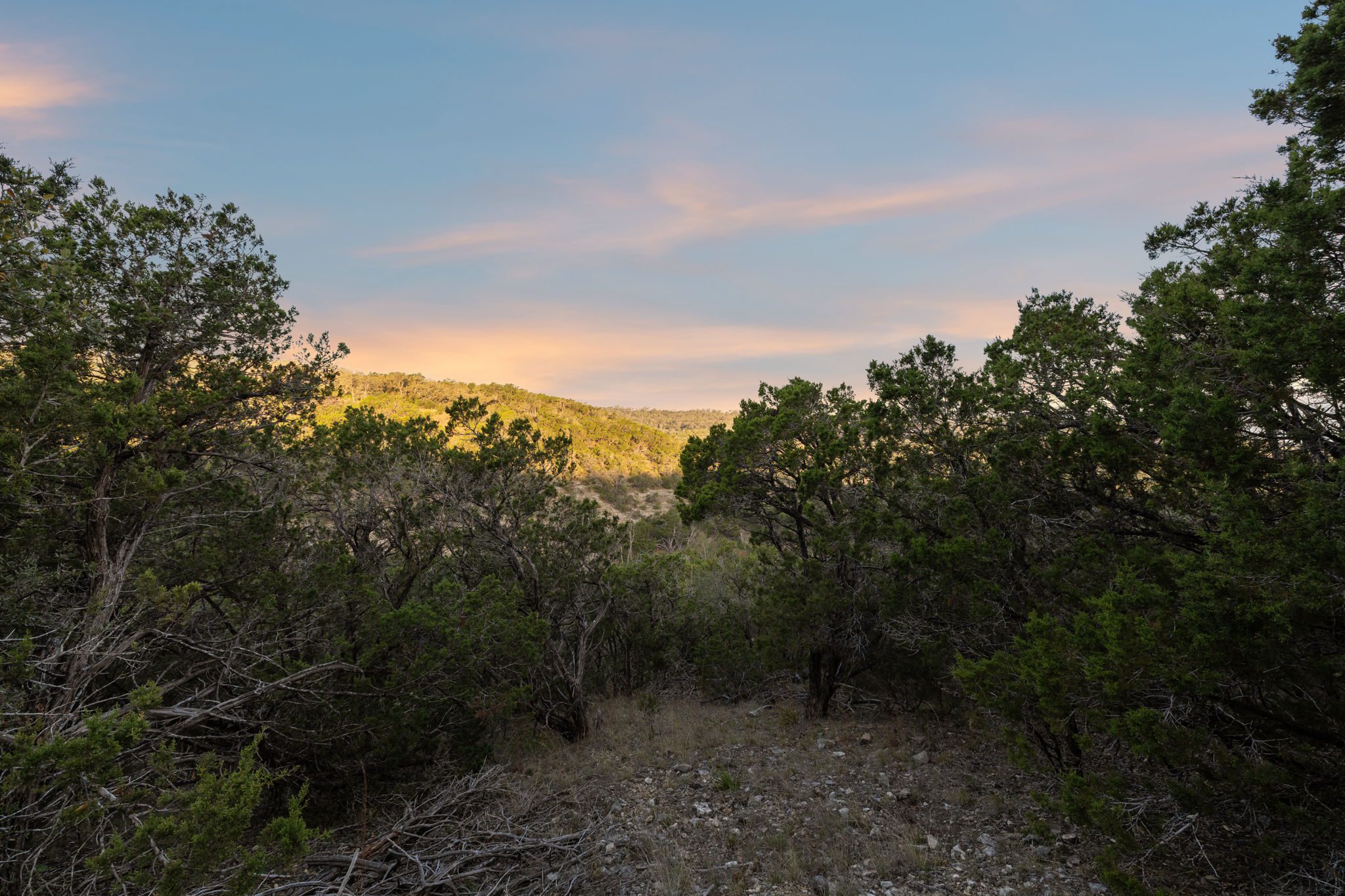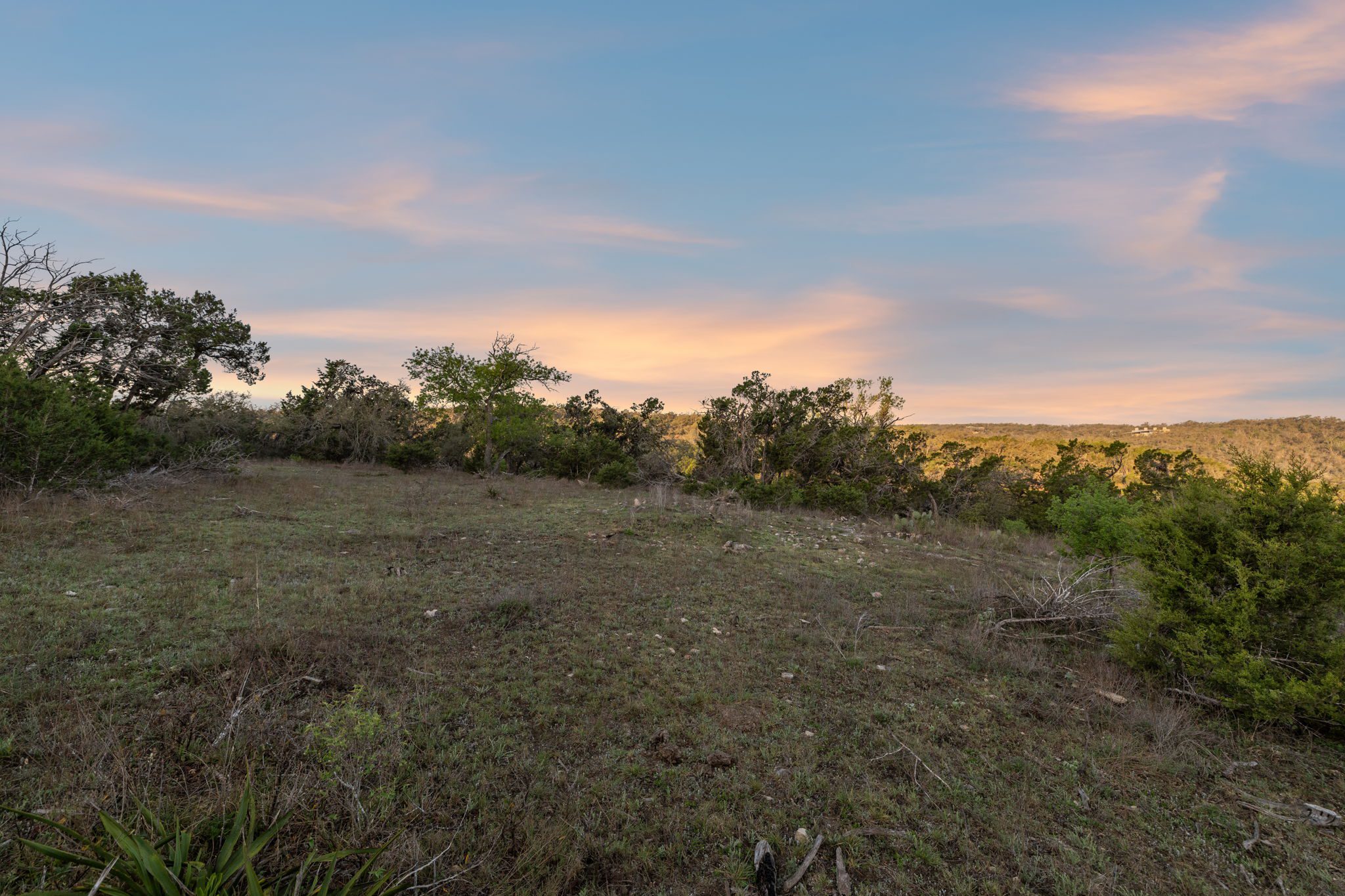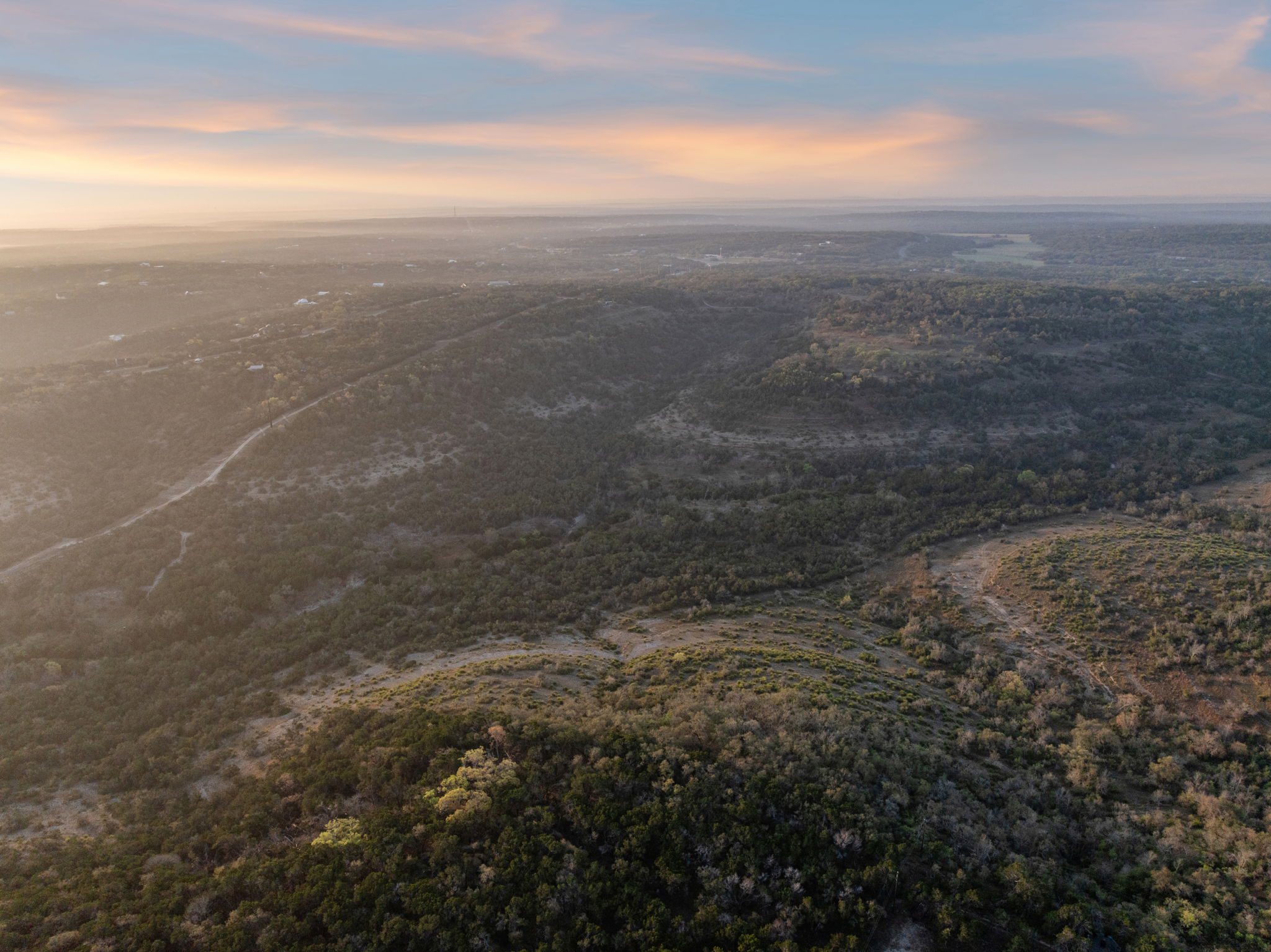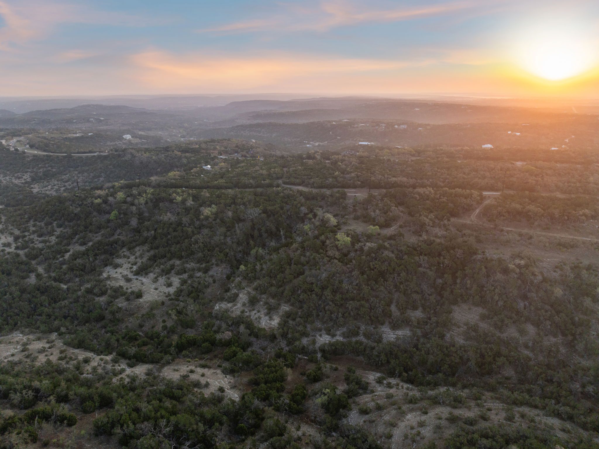 The ranch features rolling hills, mature oaks, cedar, and native brush, creating a scenic and private setting. Two seasonal creeks meander through the property, exposing dramatic limestone formations. With elevation ranging from 1,200± feet at the southeastern end to 1,020± feet to the northwest, the land offers multiple prime building sites with stunning sunset vistas.