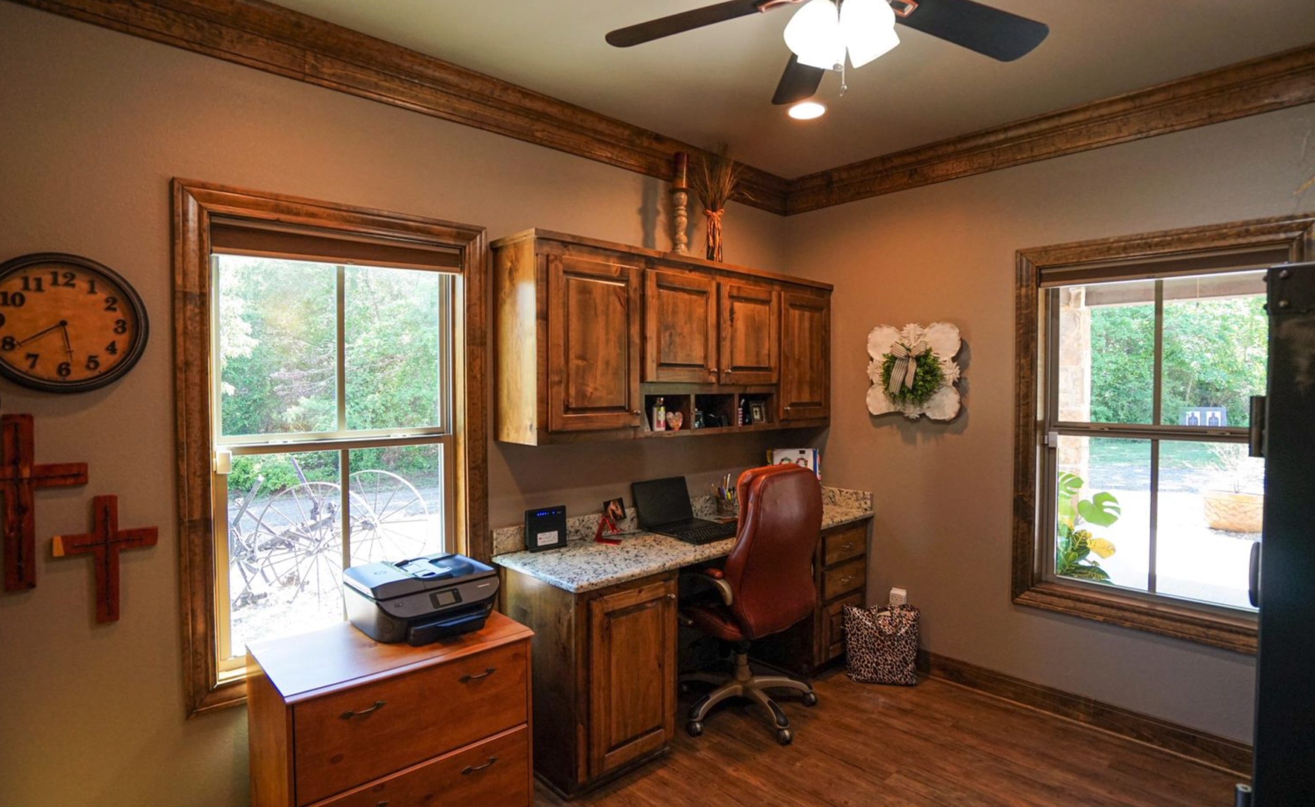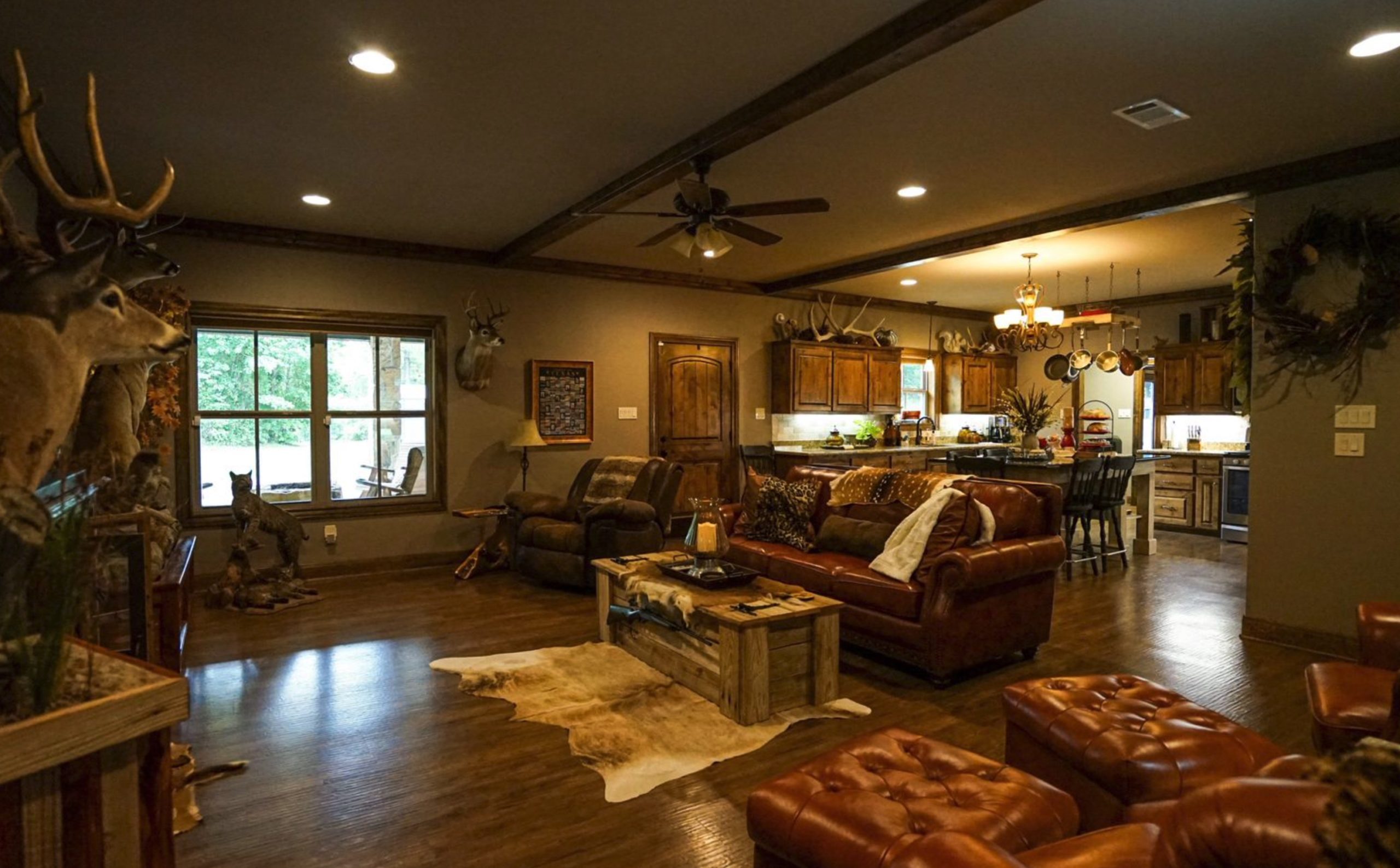 Nestled just off Hwy 79 and about 7 miles from Jacksonville sits a property where the home and land are equally exceptional. The custom 3 bedroom/2 ½ bath home consists of 4,576 SF of space under one roof – a roof fully sprayed with foam insulation. By design, the master suite is located on the opposite side of the other bedrooms for optimal privacy. Within the master suite are a custom-built walk-in closet and en suite bath with granite countertop and large shower. The generously sized office has built-in cabinets, and a granite desktop with office themed closet for maximum usage for a true at-home office experience. The open floor plan at the heart of the home allows for easy access to both the kitchen and living room. The kitchen boasts a large granite island, matching appliances, ample cabinet storage, and a large pantry. Separate from the kitchen is the washroom/mud room that leads into the thoroughly built-out man-cave with its own ½ bath, bar area, and sink with running water. The insulated garage is just beyond the man cave, which offers a 1,000 SF spray foam insulated storage area in the attic above. The covered porch is 576 SF with a welcoming gas fire pit. To add to the home's functionality, a Generac backup generator and a tankless water heater that conveniently runs on propane were installed to power the whole house. Outside the home is a well-thought-out pavilion area with an outdoor kitchen and storage shed. A rock walkway takes you to the outdoor kitchen, which includes a cozy fireplace, TV and satellite hookups, a serving island with sink and faucet, and three outdoor-rated ceiling fans. The shed adjacent to the pavilion incorporates spray foam insulation, electricity, and water.