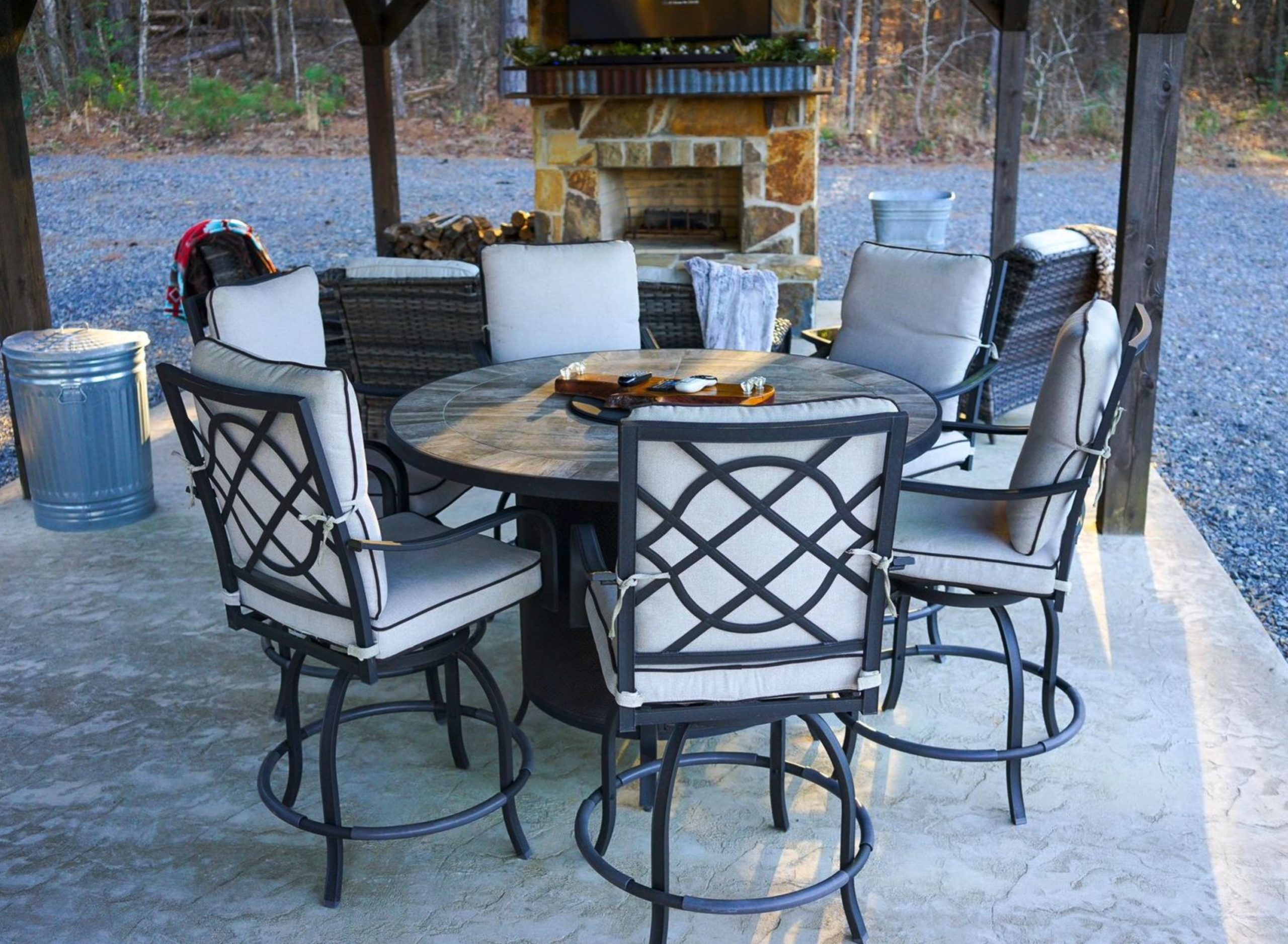 • Outdoor pavilion/kitchen with fireplace, tv/satellite hookups, serving island