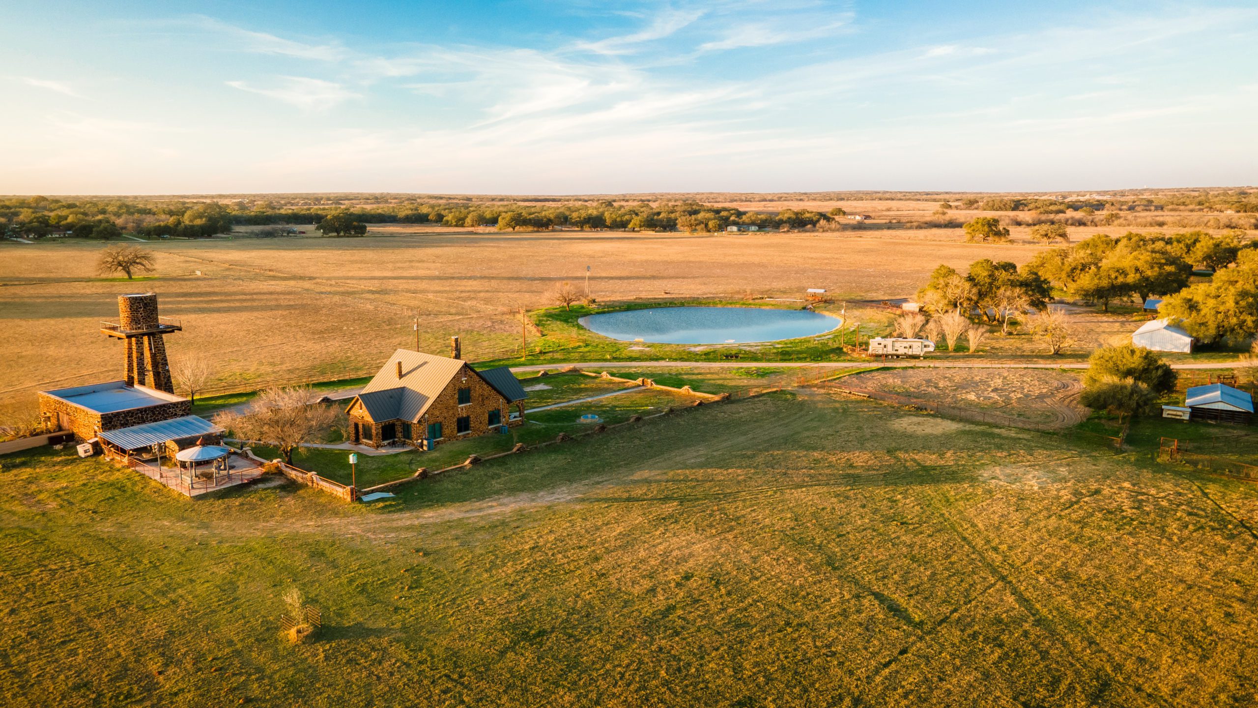 This well-maintained 98.0 acre family ranch is located 5 miles North of Poteet, approximately 3/4 of a mile West of Highway 16. Being situated only 28 miles South of Downtown San Antonio yields a property that has the unique combination of quiet country living near the big city. This beautiful sandy loam soil cattle ranch has been in the same family for sixty-one years, and it truly shows. Local rock was used to build the historic four-bedroom, two-bathroom main house that was completed in 1930. The property is complimented by an ample water infrastructure, supported by four Carrizo-Wilcox water wells, fully capable of meeting irrigation necessities for livestock and agriculture. High quality seven pasture cross fencing, quality exterior fencing, and two-sided road frontage all position this property to meet a wide variety of needs. Whether the game plan calls for grazing livestock, irrigated agriculture, knockout dove hunting, lunker catfish, or all of the above, this impressive property certainly has a lot to offer.